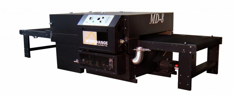 The MD-8 is a compact, powerful gas and electric fired dryer designed to cure a wide variety of substrates. The MD-8 has many of the same terrific features as the AIRJET, with a space saving footprint and a price that fits into even the most modest budget. The MD-8 offers our patented AIR DEFLECTOR RECYCLING SYSTEM which re-circulates heated air through the heat chamber.